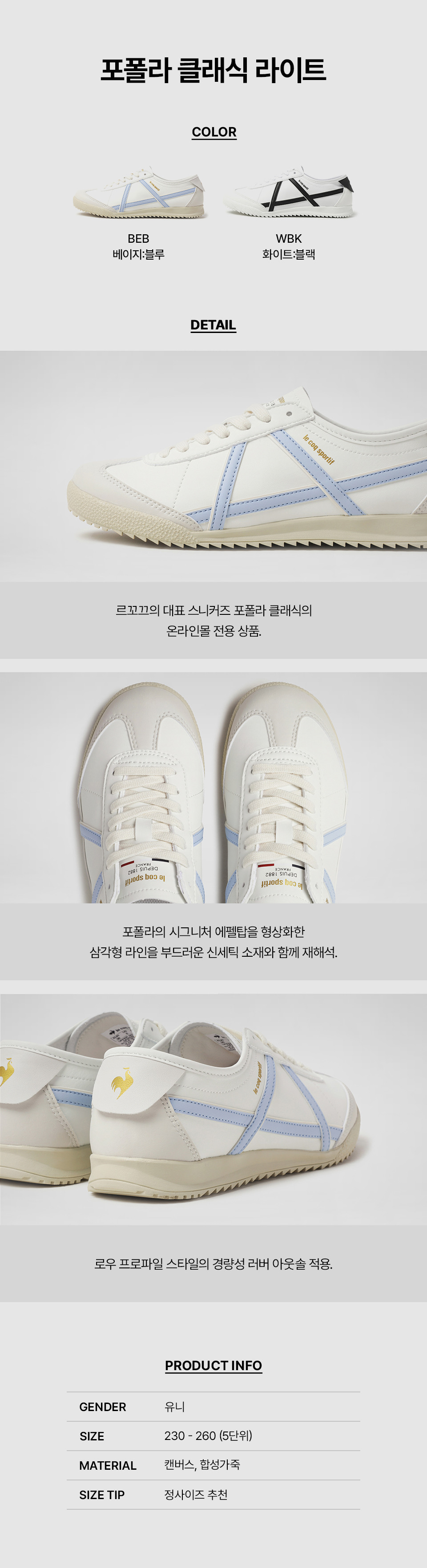 | 소재 | [BEBL]겉감재료:합성가죽(100%),[BEBL]안감재료:면(100%)+합성가죽(100%),[BEBL]창재료:합성고무,[WBK0]겉감재료:합성가죽(100%),[WBK0]안감재료:면(100%)+합성가죽(100%),[WBK0]창재료:합성고무 (입고 시기에 따라 정보가 상이할 수 있어, 수령하신 상품의 라벨을 참고하시기 바랍니다.) |