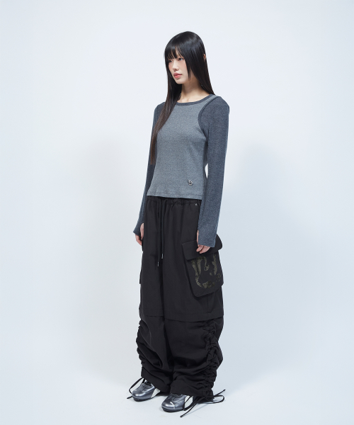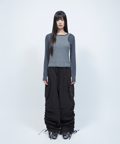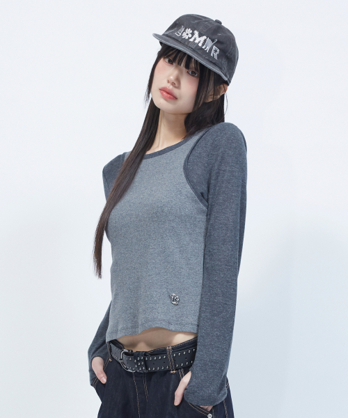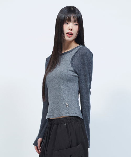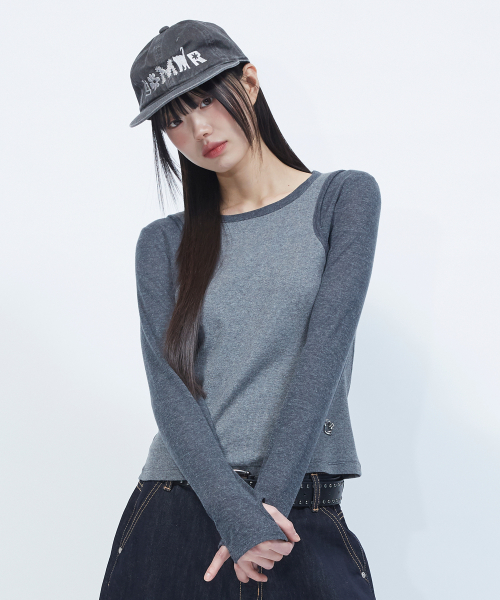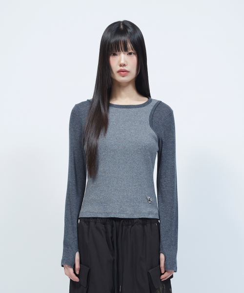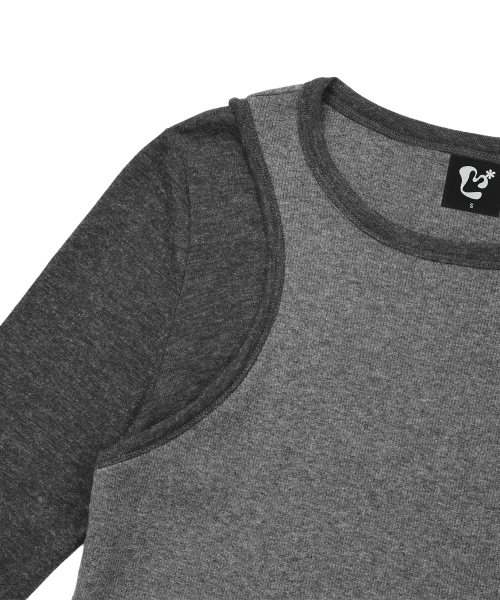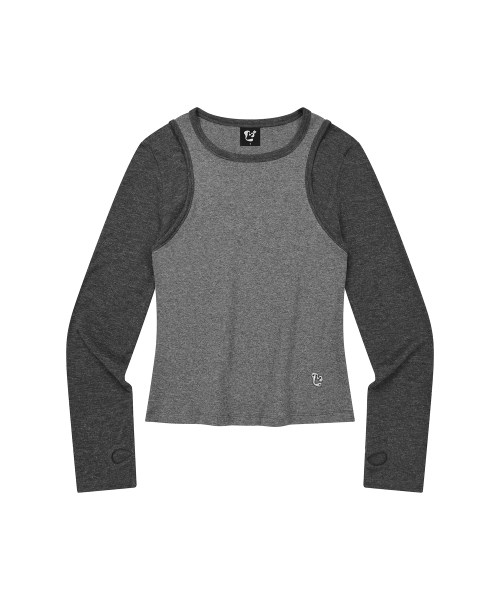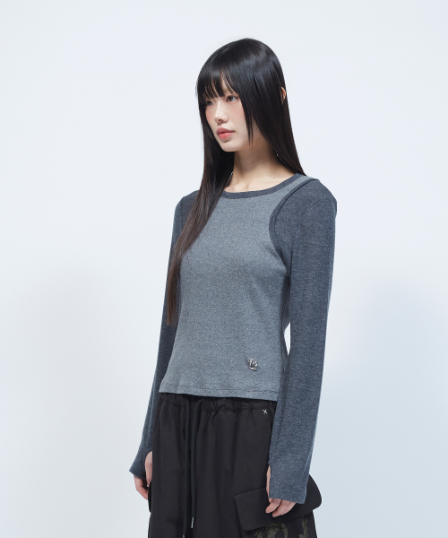 투톤 슬리브리스 레이어드 롱슬리브 [CHARCOAL]