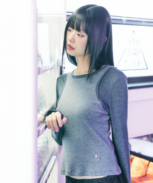 슬림 골지 레이어드 긴팔 티셔츠 GREY