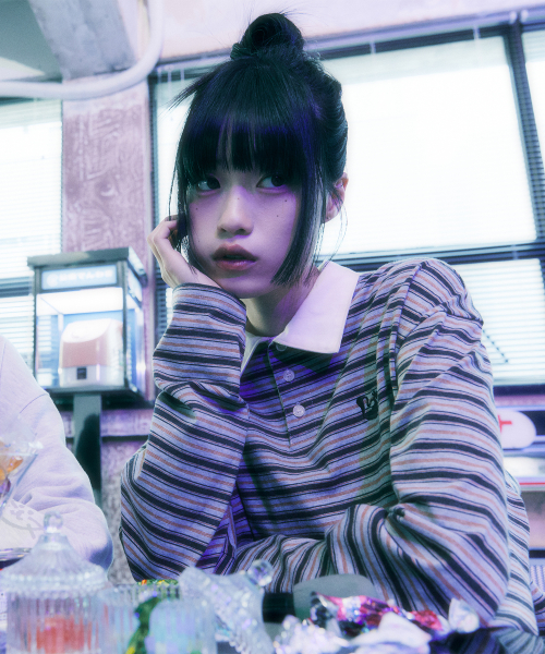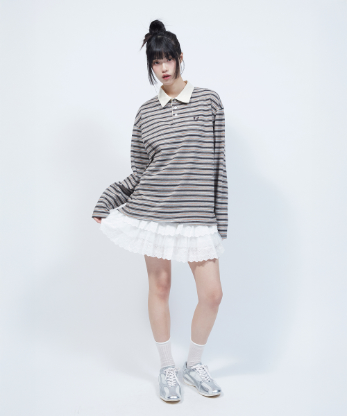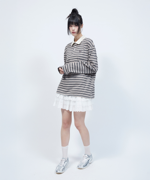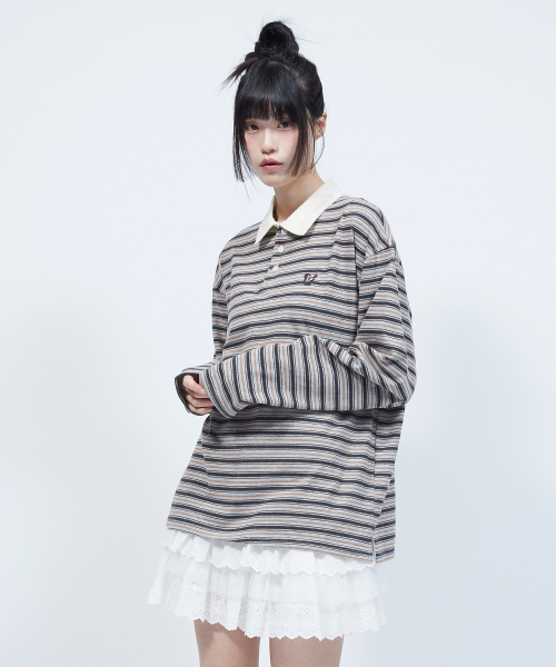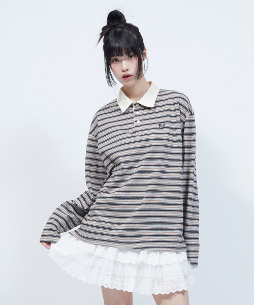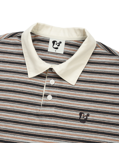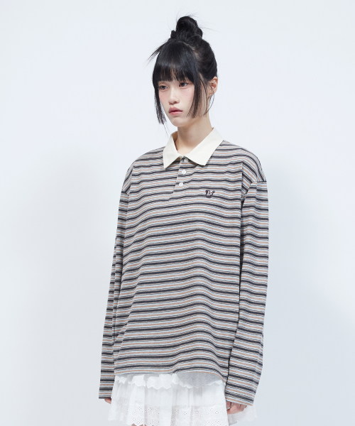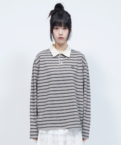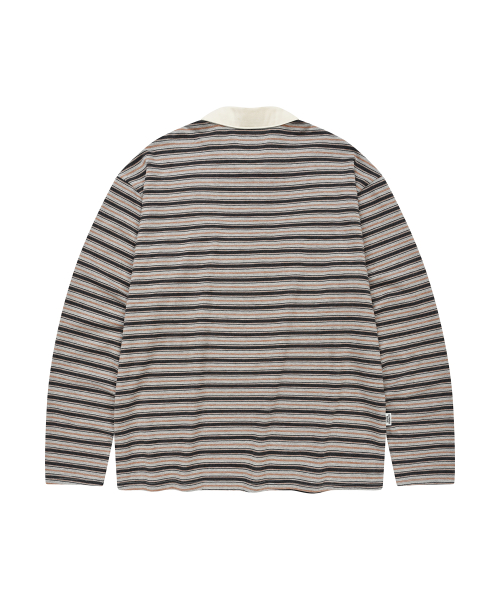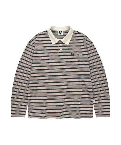 멀티 스트라이프 카라 긴팔 티셔츠 GREY