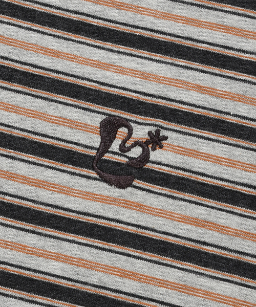 모티프 자수 스트라이프 레이어드 긴팔 티셔츠 LIGHT GREY