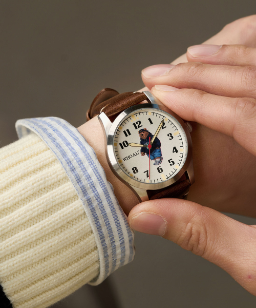 [로이드X후아유] 콜라보 베어 남성 가죽 시계 (브라운-아이보리)