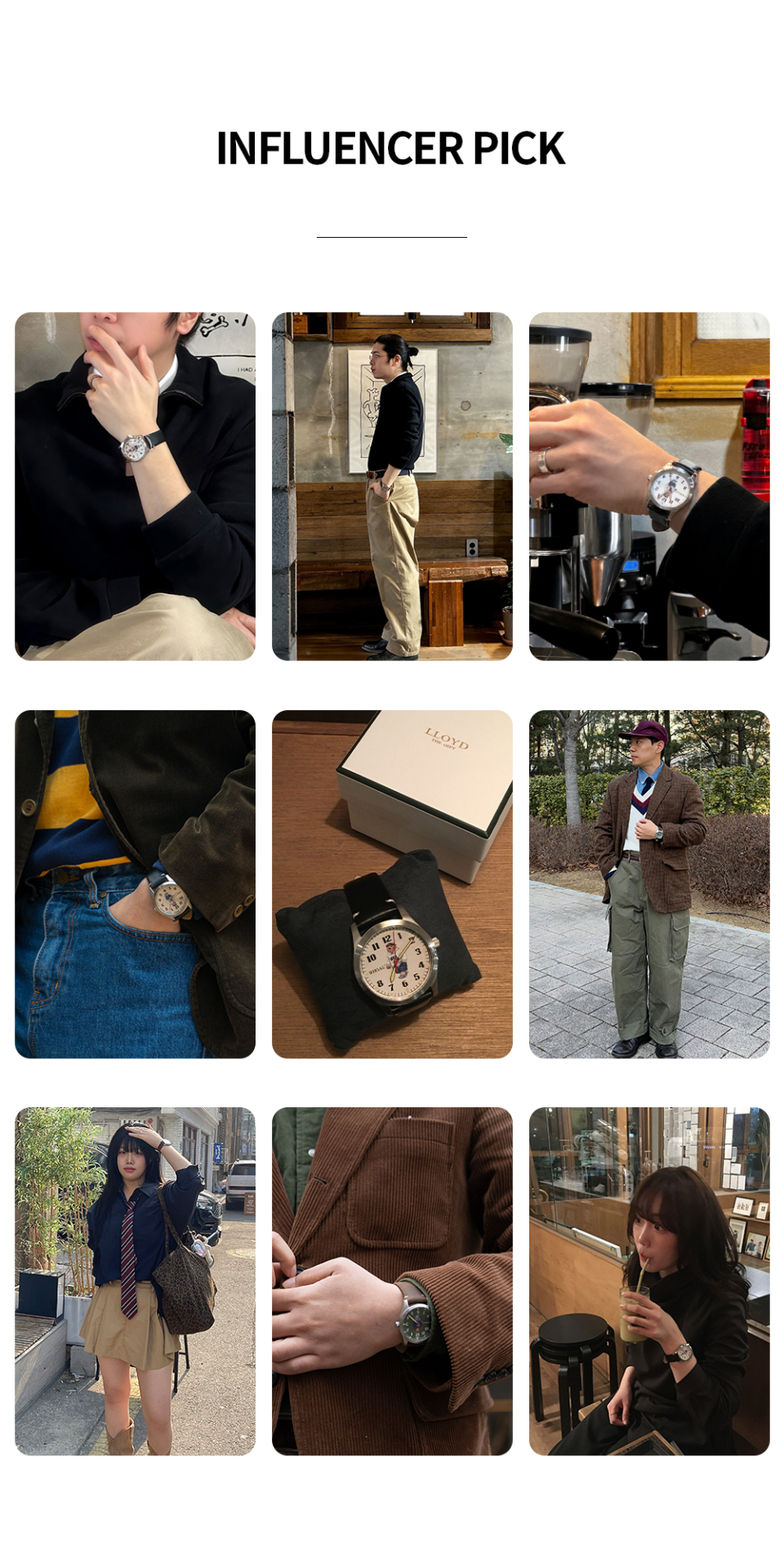 [로이드X후아유] 콜라보 베어 남성 가죽 시계 (블랙-차콜)