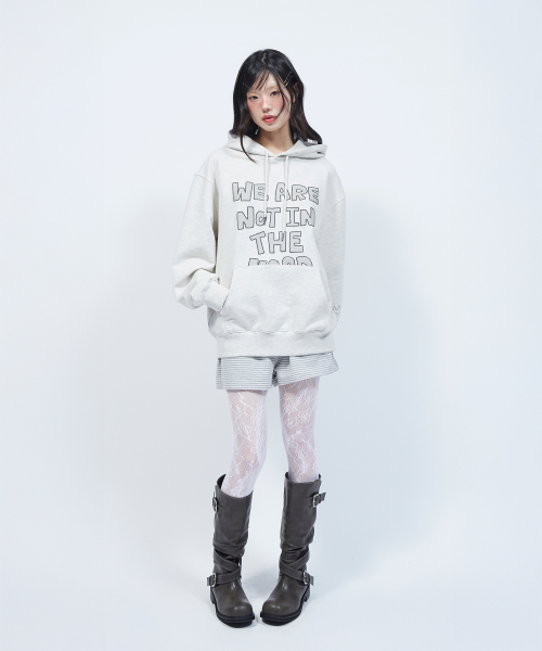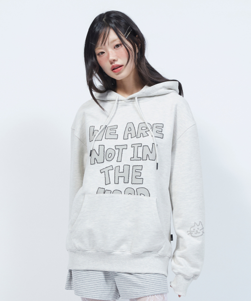 레터링 캣 포인트 그래픽 후드 OATMEAL
