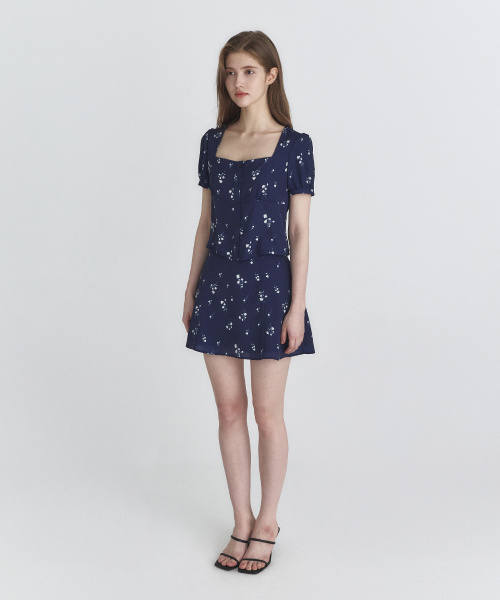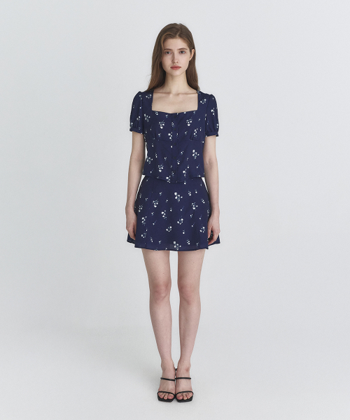 플로럴 플레어 스커트 (네이비)