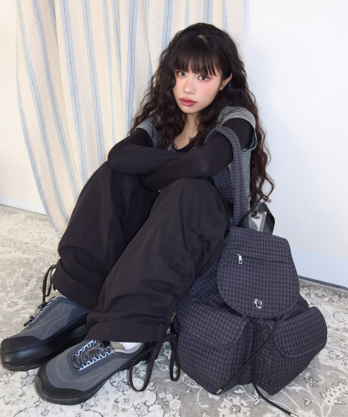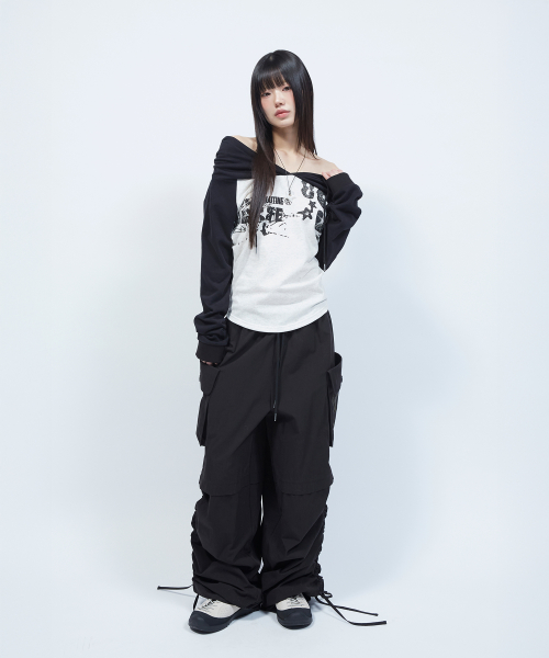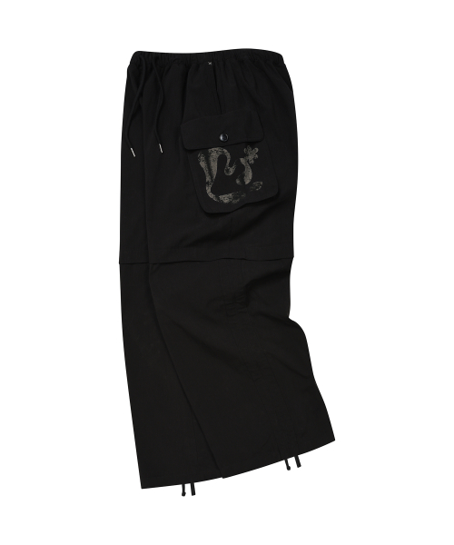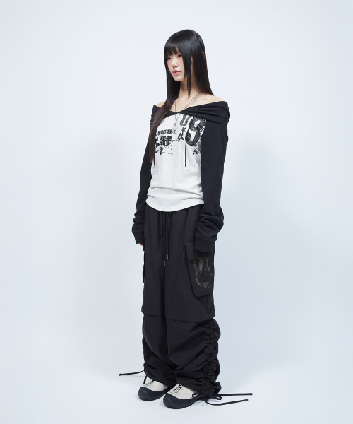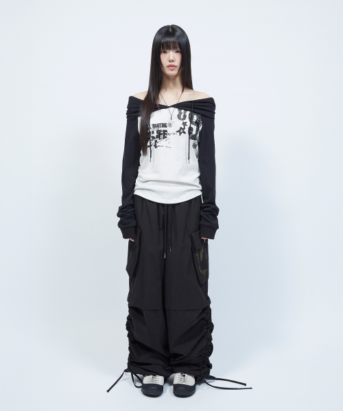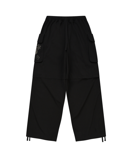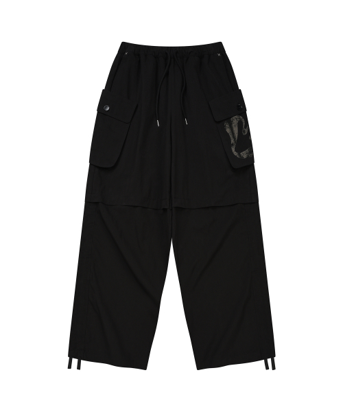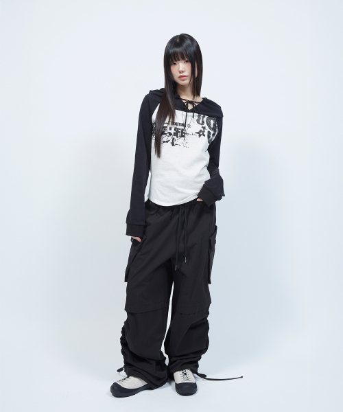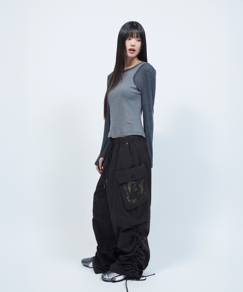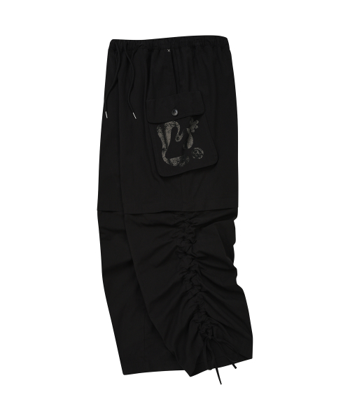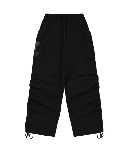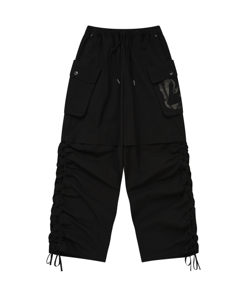 셔링 포인트 스트링 카고 팬츠 BLACK