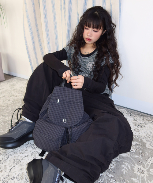 모티프 자수 스트라이프 레이어드 긴팔 티셔츠 BLACK