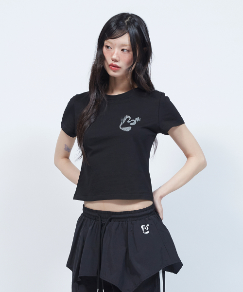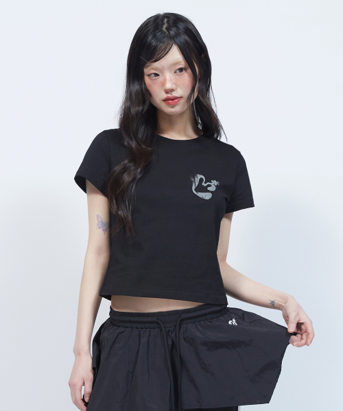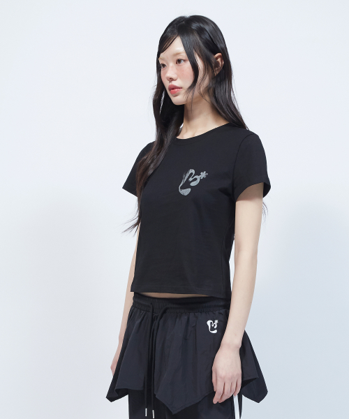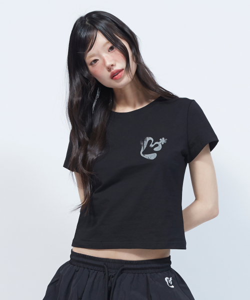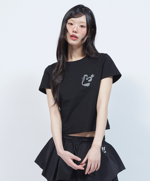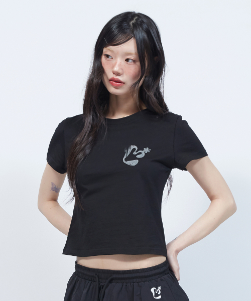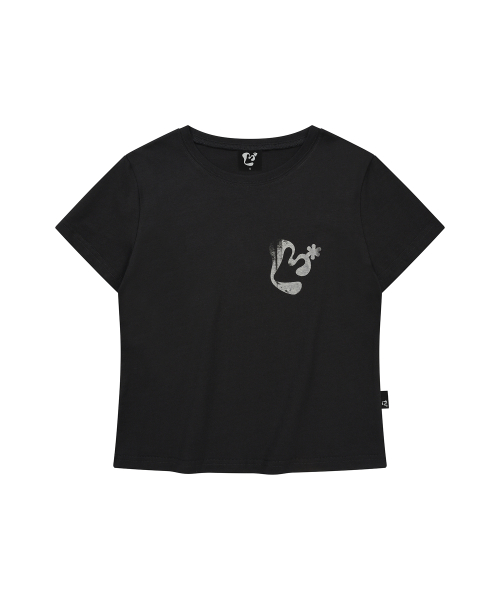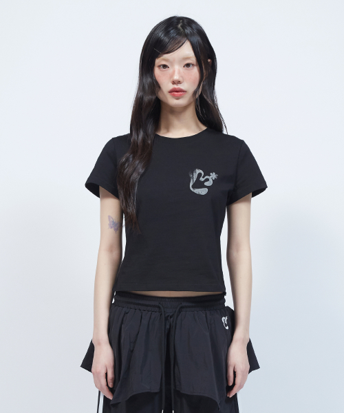빈티지 플로럴 로고 슬림 반팔 티셔츠 BLACK
