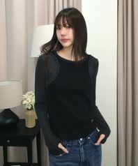 슬림 골지 레이어드 긴팔 티셔츠 BLACK