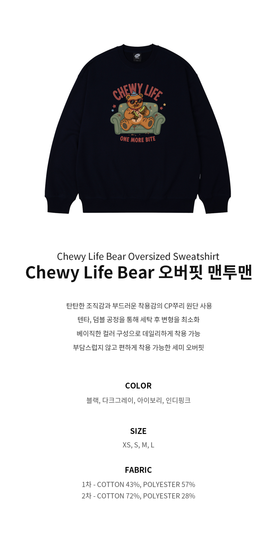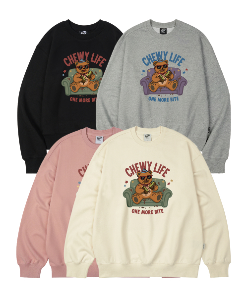 Chewy Life Bear 오버핏 맨투맨_4 COL (크롭/기본)