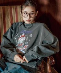 Hollysheesh Holyday Cat 피그먼트 오버핏 맨투맨_5 COL