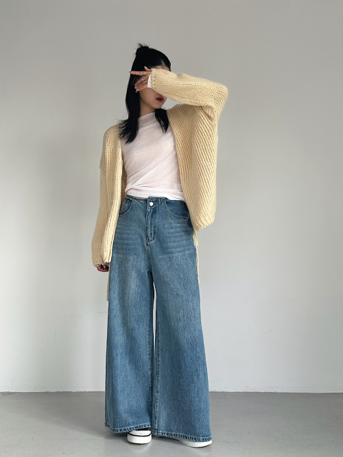 베이지 커브드 절개라인 와이드 코튼 팬츠