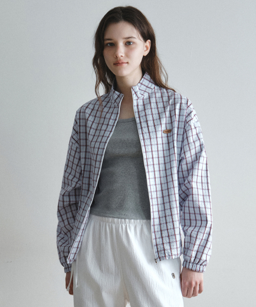 체크 하이넥 윈드 브레이커_SKY BLUE(W26OT06)