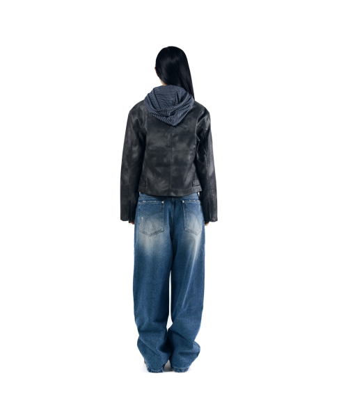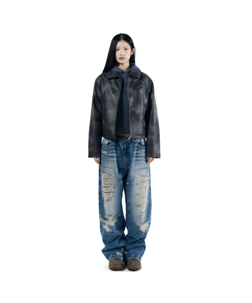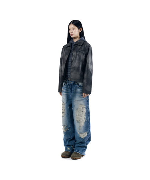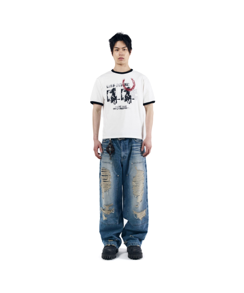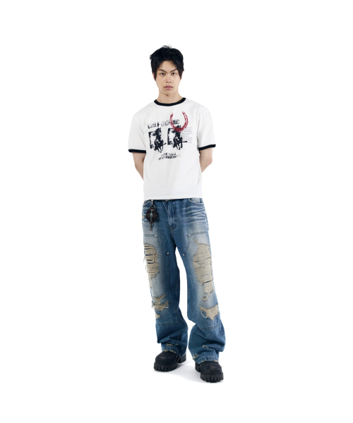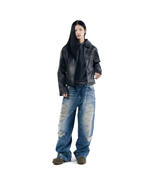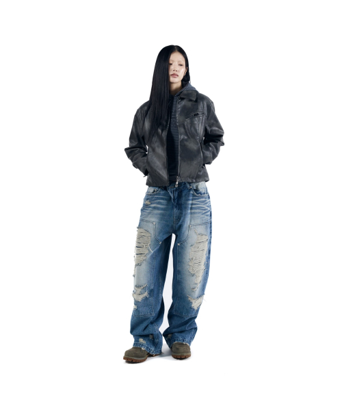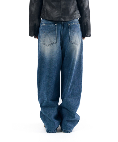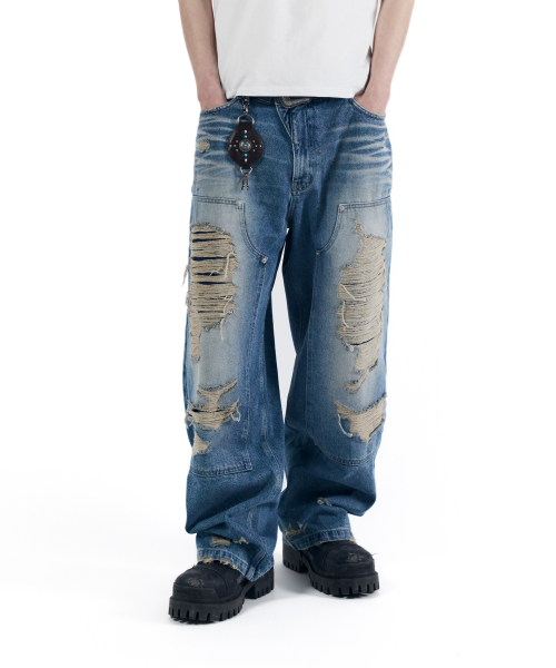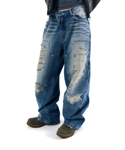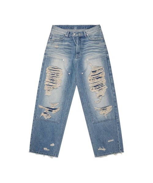디스트로이드 커브드 데님 팬츠 - 라이트블루
