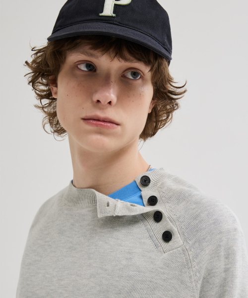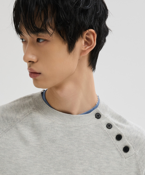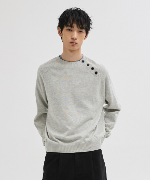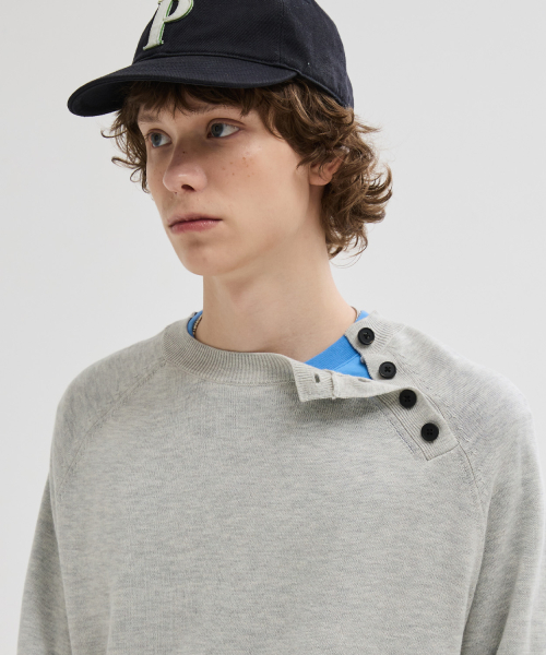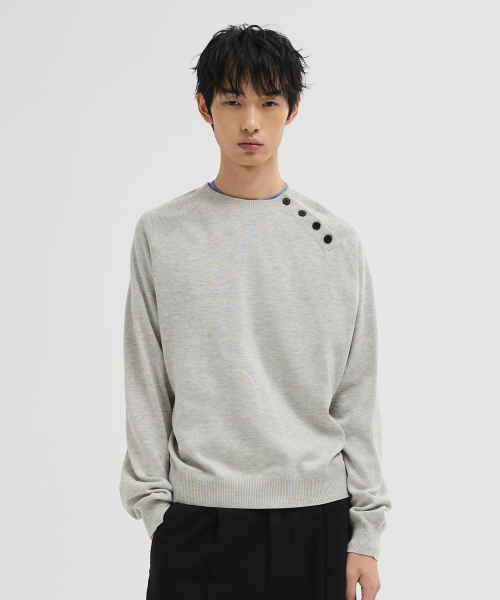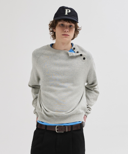 사선 헨리넥 크롭 니트 [그레이]