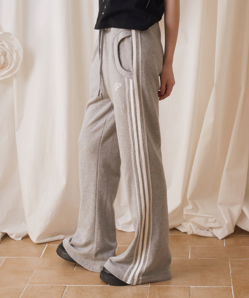LACE LINE SWEAT BOOTS CUT PANTS GRAY