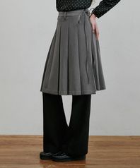 플리츠 랩 미디스커트 그레이