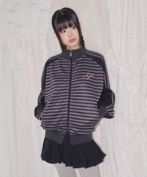 STRIPE RAGLAN JERSEY TRACK JACKET BLACK