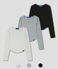 돌핀 피티드 슬림 크루넥 크롭 긴팔티셔츠 3COLOR
