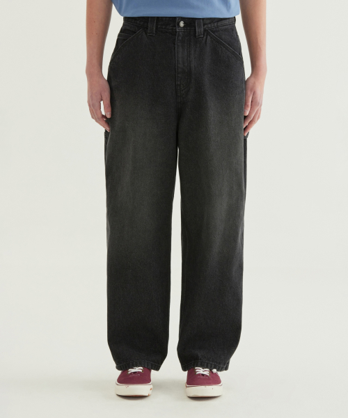 링사 세미와이드 워크 데님 팬츠 블랙