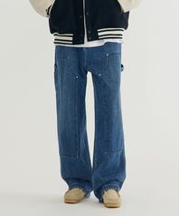 [추영우 착용] 와이드 카펜터 더블니 데님 팬츠 Blue