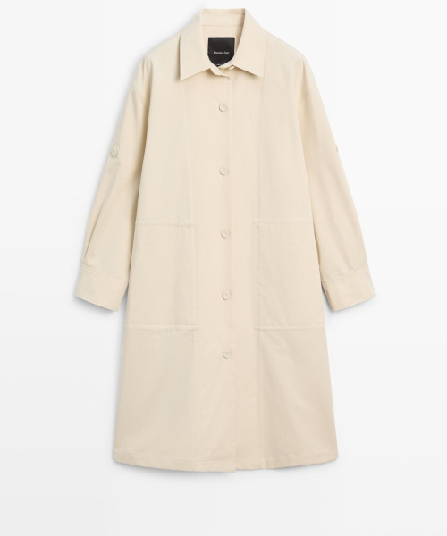 | 제품 이름: 롤업 슬리브 코튼 트렌치코트 | ||