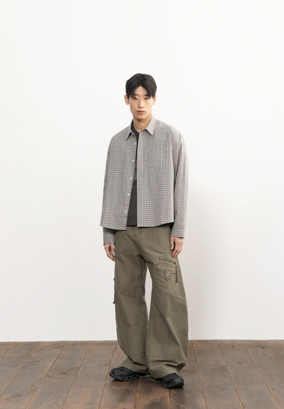 로우라인 크롭 체크셔츠 [슬레이트 그레이]