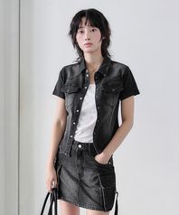 Western Slim Denim Short Shirts DCWSH002BlackA