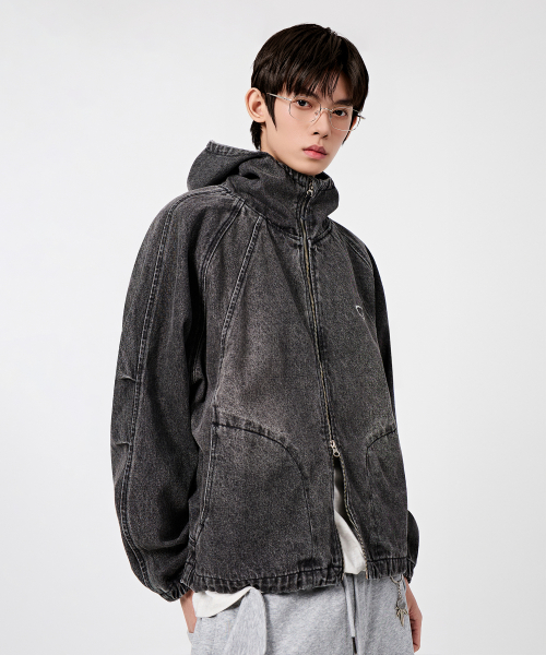 바라클라바 슬래쉬 후드 집업_데님 빈티지 블랙