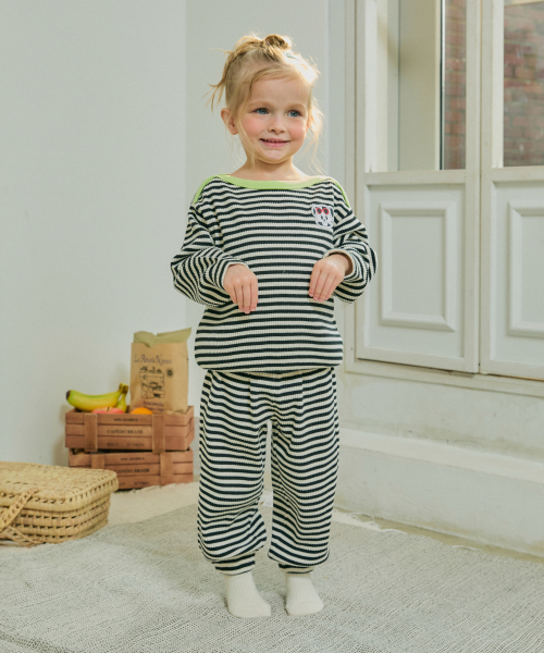 골지 스트라이프 보트넥 실내복 블랙 RO6ACLO02BK