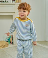 골지 스트라이프 보트넥 실내복 라이트블루 RO6ACLO02B1