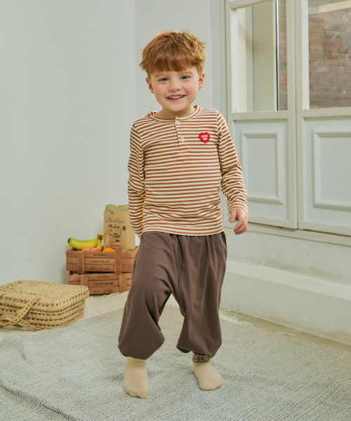 코튼 스트라이프 실내복 브라운 RO6ACLO07W2