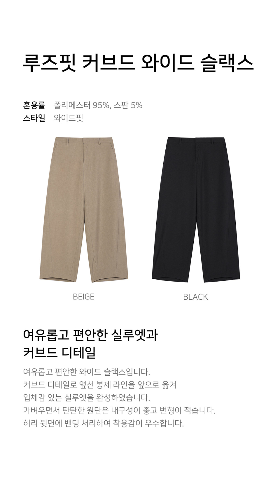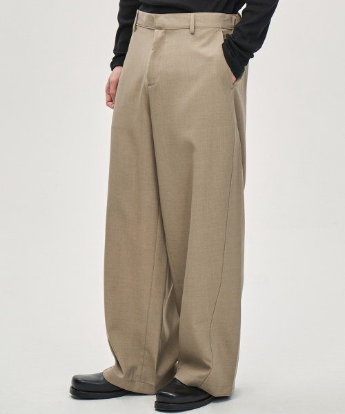 루즈핏 커브드 와이드 슬랙스 (BEIGE)