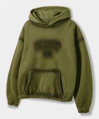VLAD 핸드 브러쉬 아플리케 후드 티셔츠_피그먼트 올리브