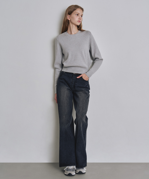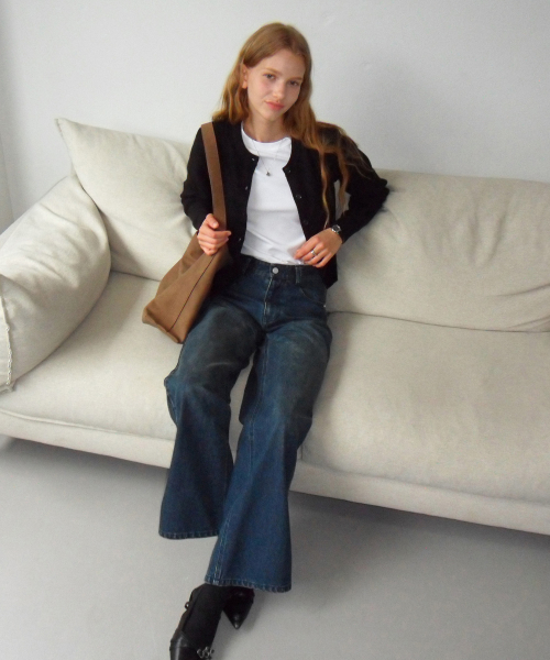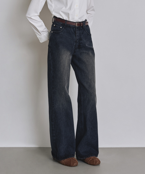 [우먼] 루즈핏 부츠컷 데님 팬츠 다크블루 COWPT002DBLUE