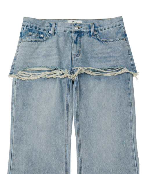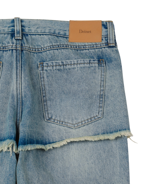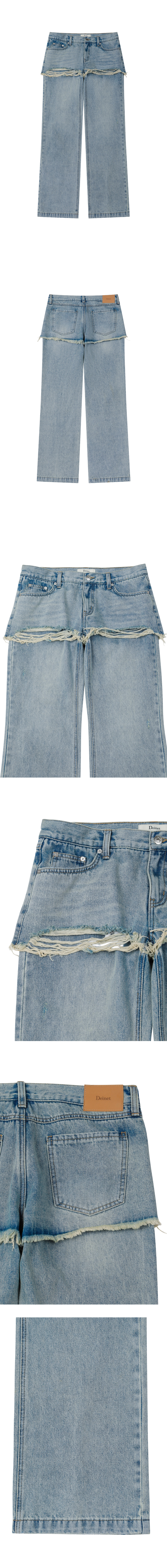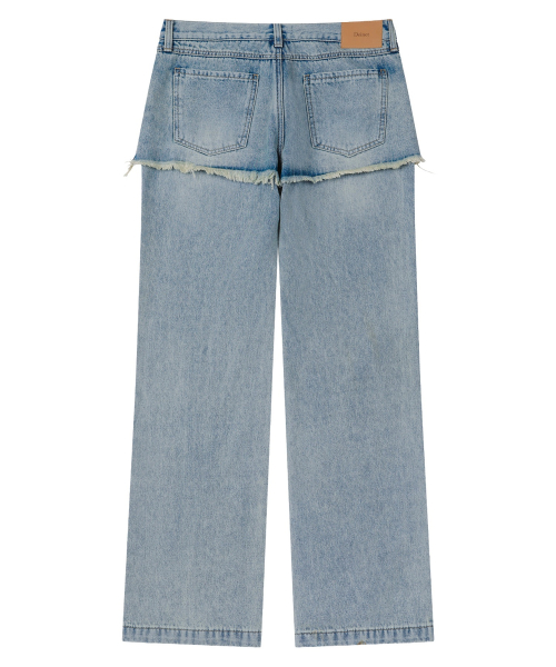 LAYERED SEMI BOOTSCUT DENIM PANTS IN LIGHT BLUE
