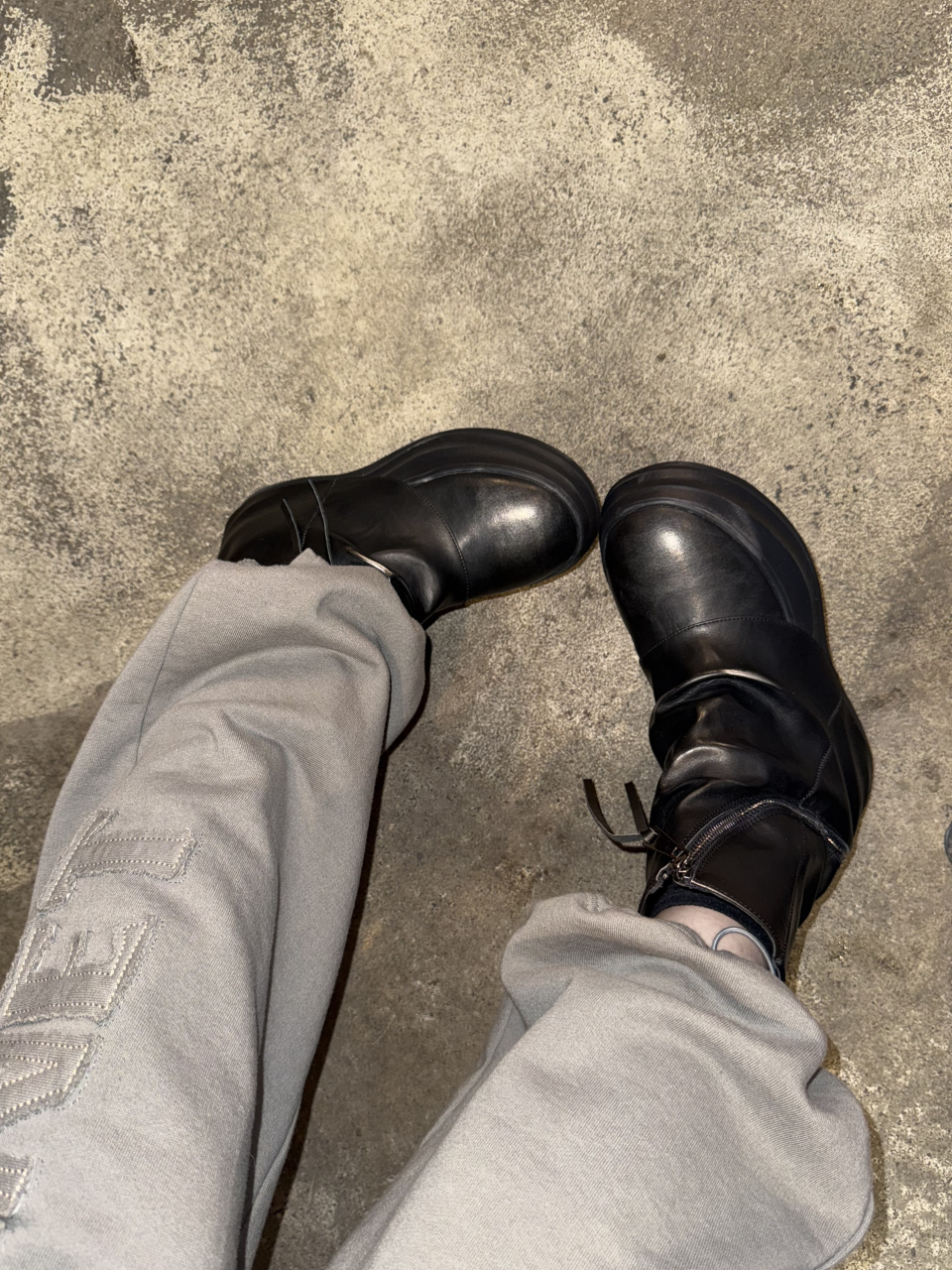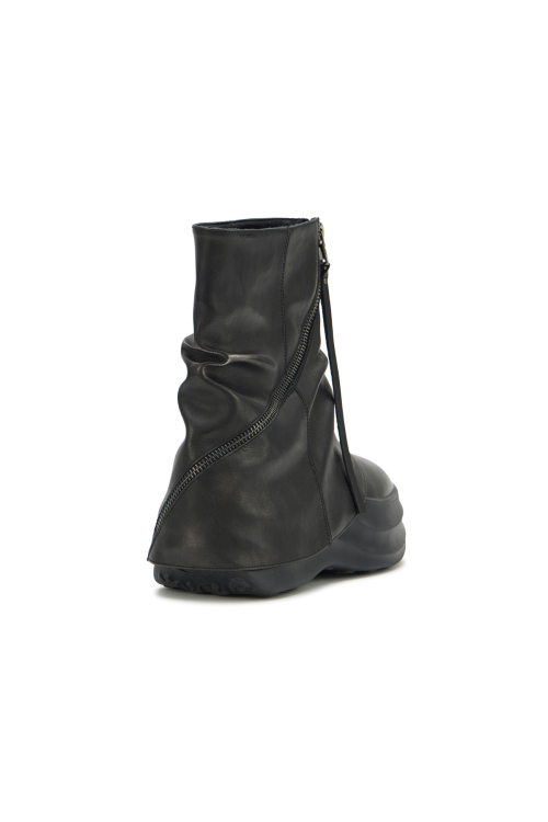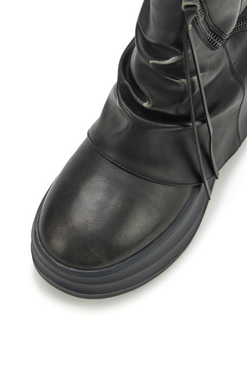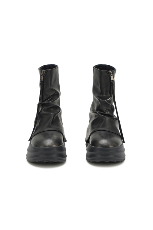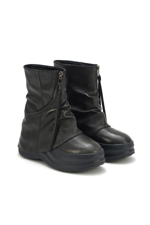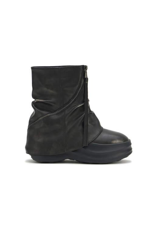 ZIPPER CURVED LINE FLATFORM BOOTS IN BLACK