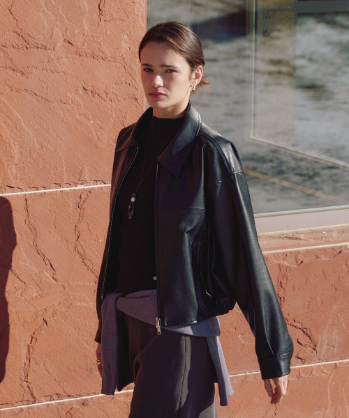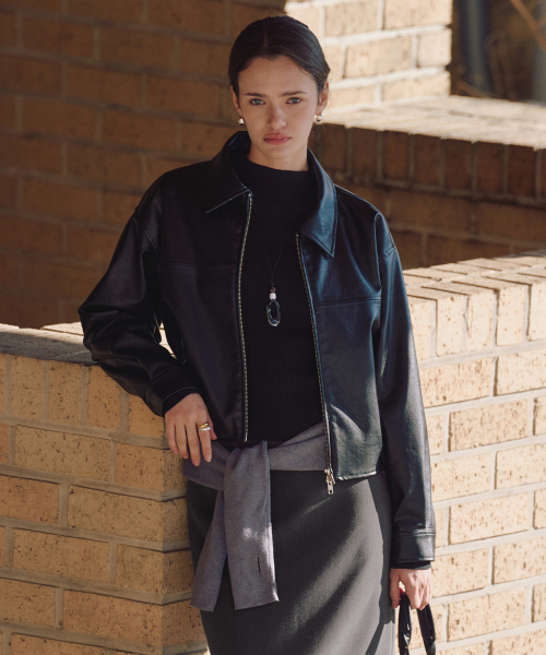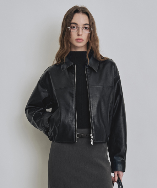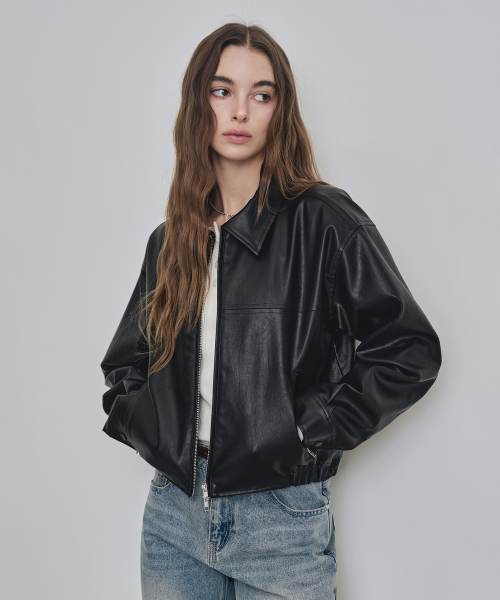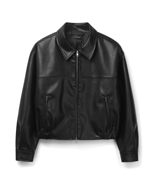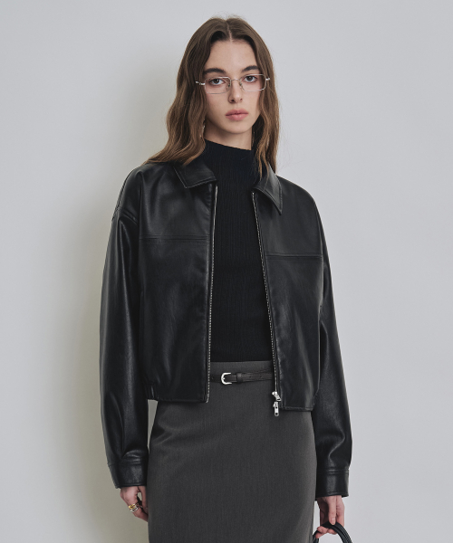 [우먼] 신세틱 레더 세미 크롭 자켓 COWJK001LEBLACK