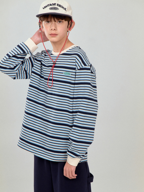 CREAM STRIPE TEE_SKY BLUE