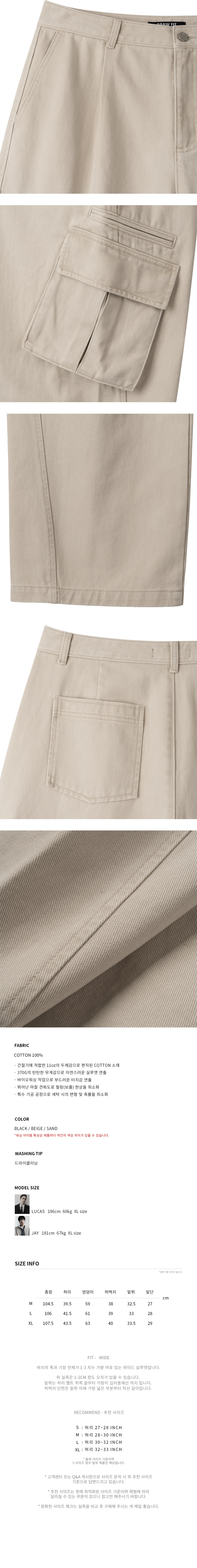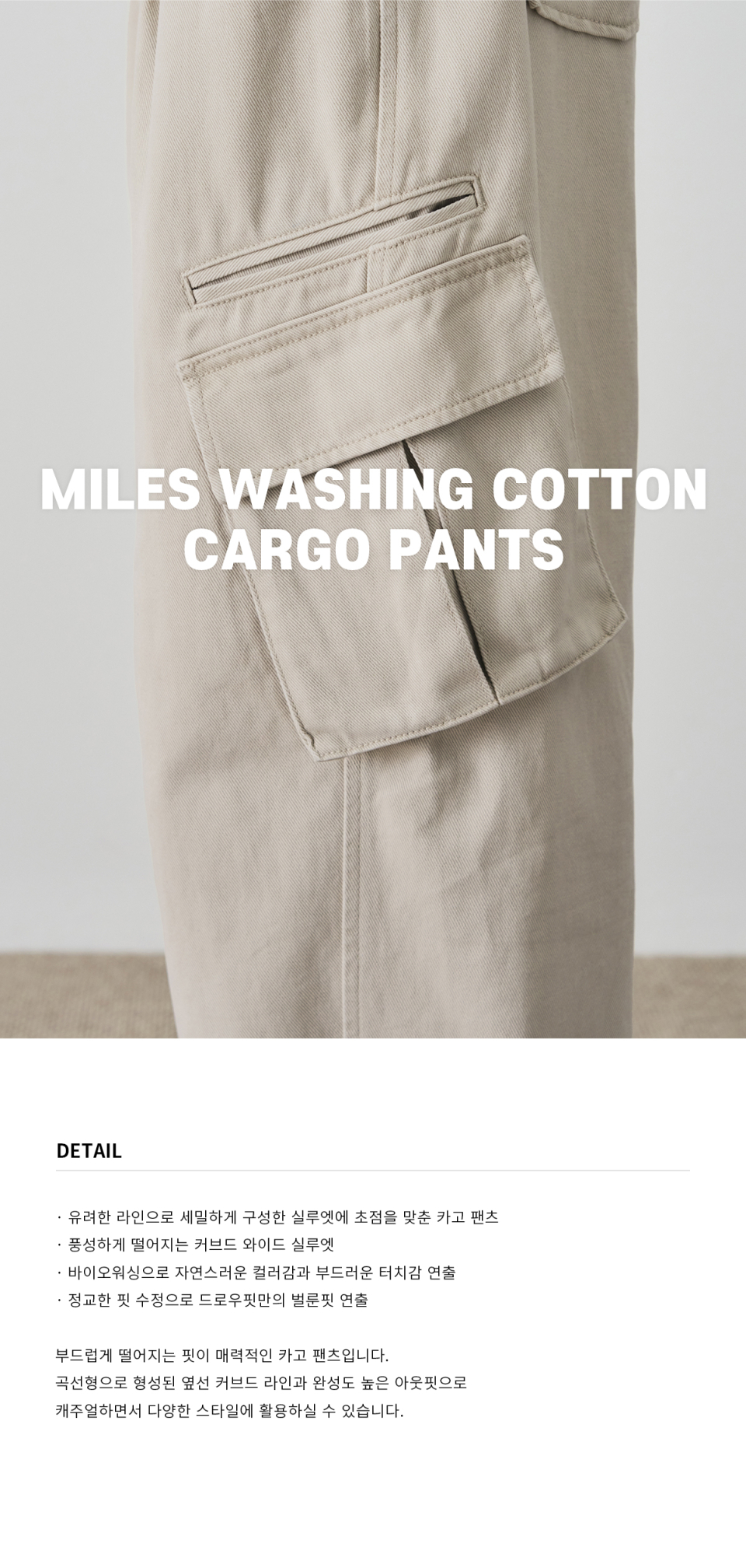 마일즈 워싱 코튼 카고 팬츠 [BEIGE]