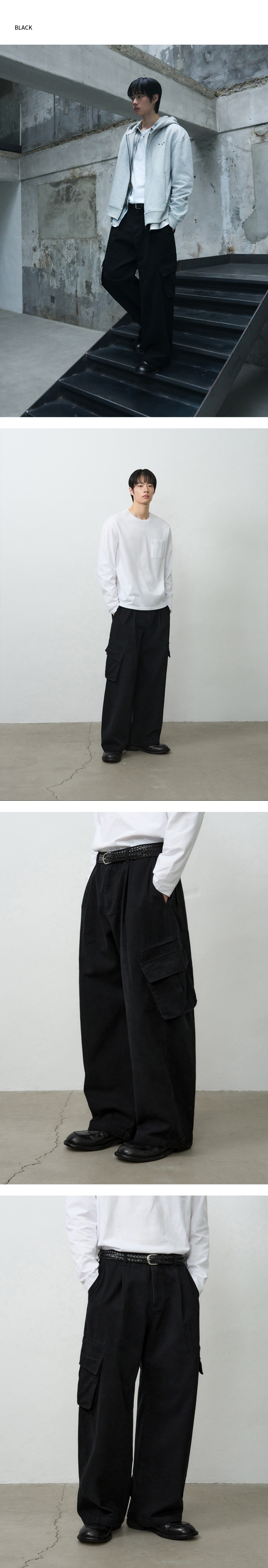 마일즈 워싱 코튼 카고 팬츠 [BLACK]