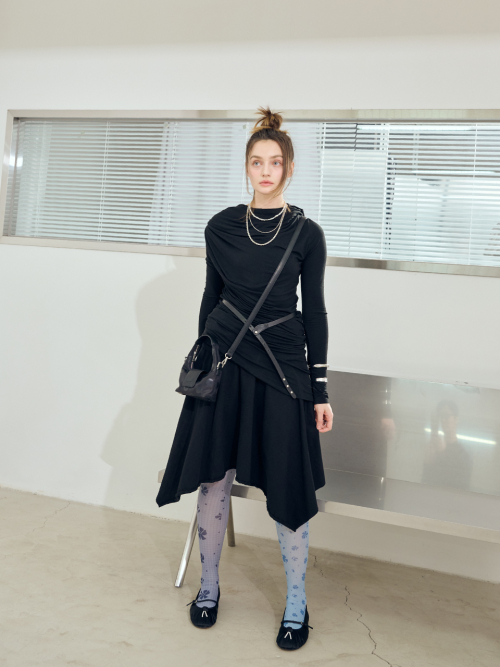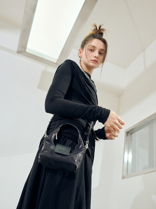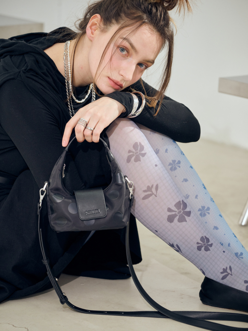 올 블랙 컬러에 은은한 도트 패턴으로 키치함과 리듬감 추가