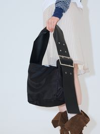 무너지지 않으면서도 유연한 하프문 쉐입br /A16>와이드한 스트랩이 어깨에 안정적으로 안착되며, 토트와 숄더 2WAY 연출 가능