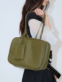 글로시한 나일론 바디에 매트한 레더 질감의 플랩 추가