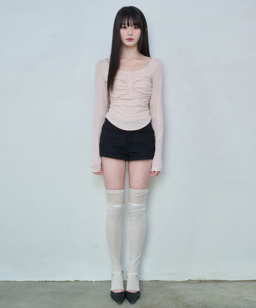 아오이 리본 발레 셔링 티 [PORCELAIN PINK]