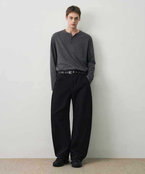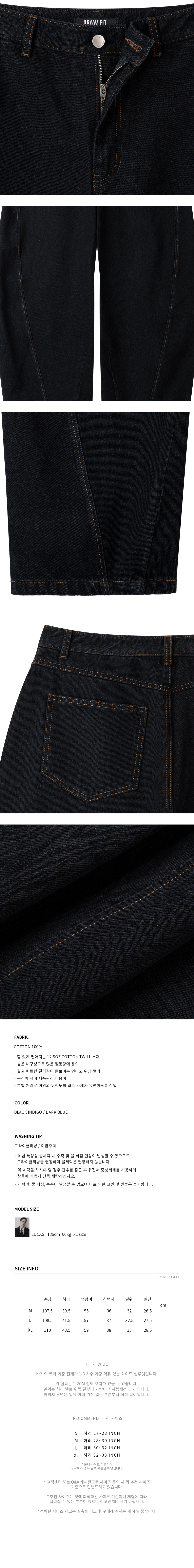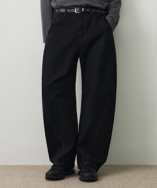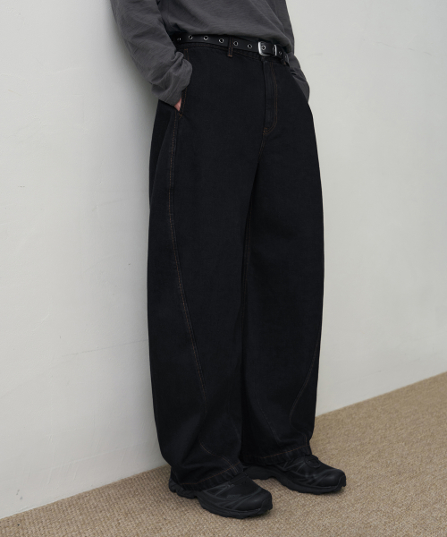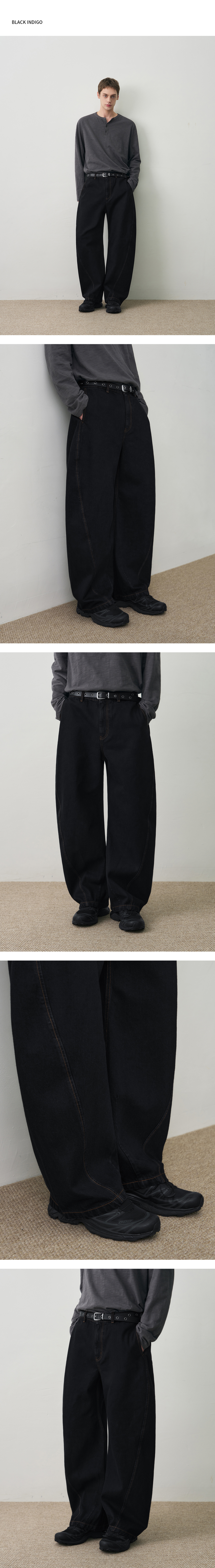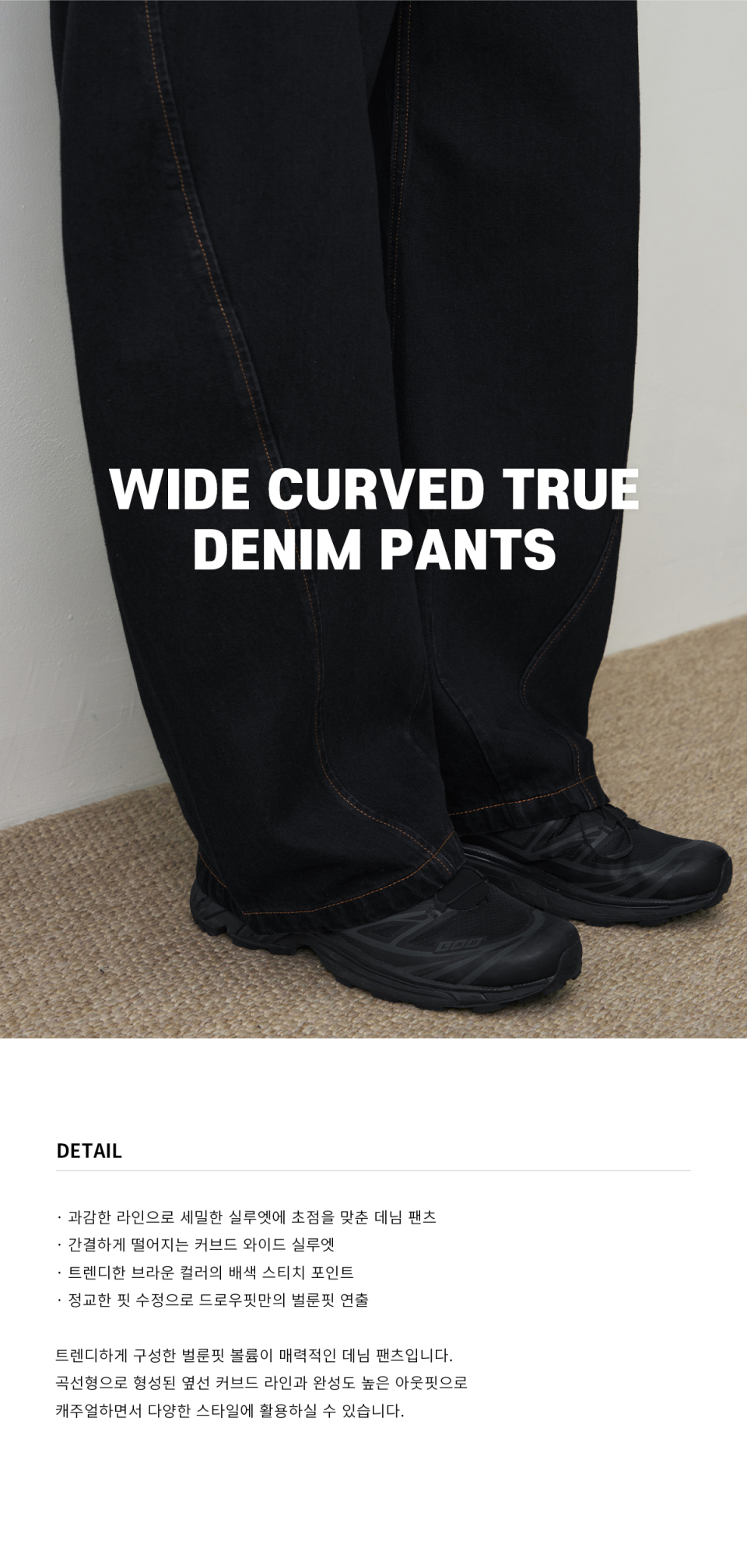 와이드 커브드 트루 데님 팬츠 [BLACK INDIGO]