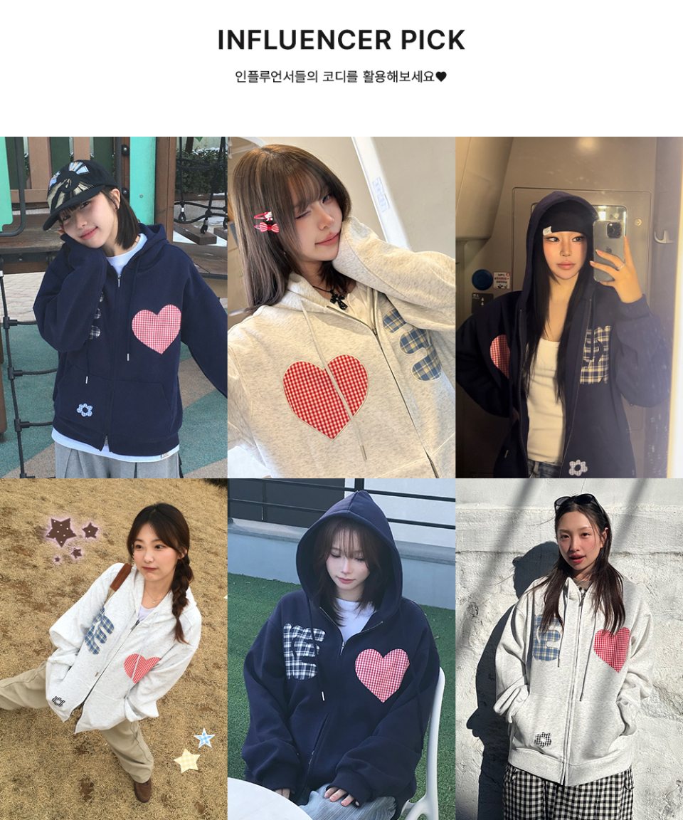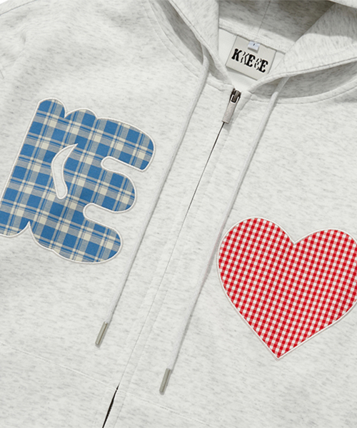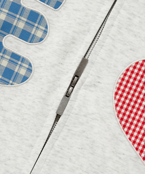 CHECK PATCH FLOWER ZIP UP HOOD(GREY)