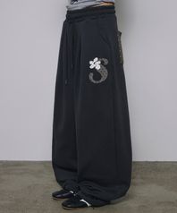 엔젤 아플리케 커브드 스웨트 팬츠[그레이]