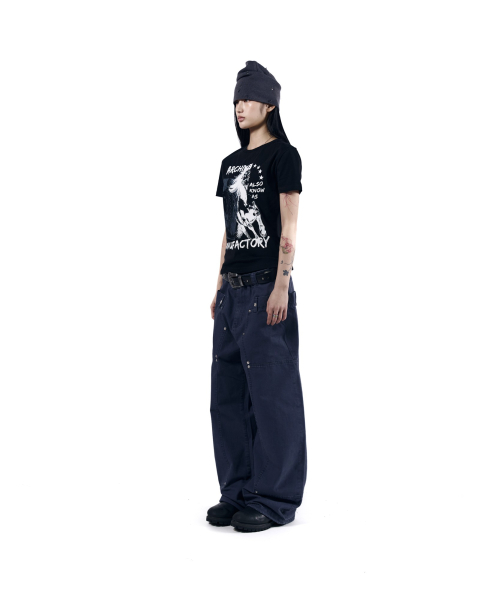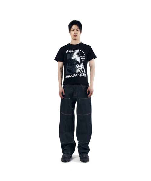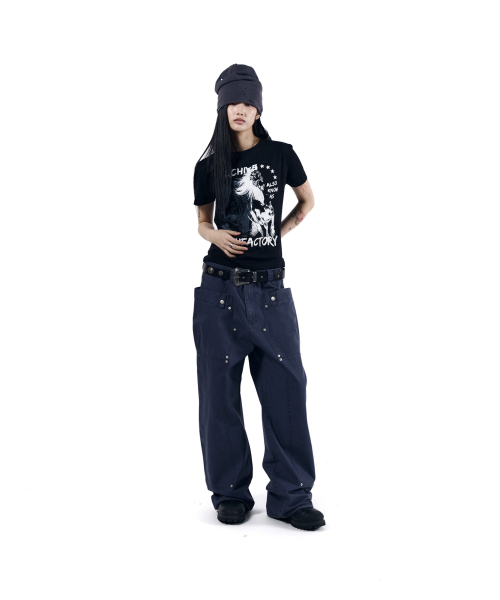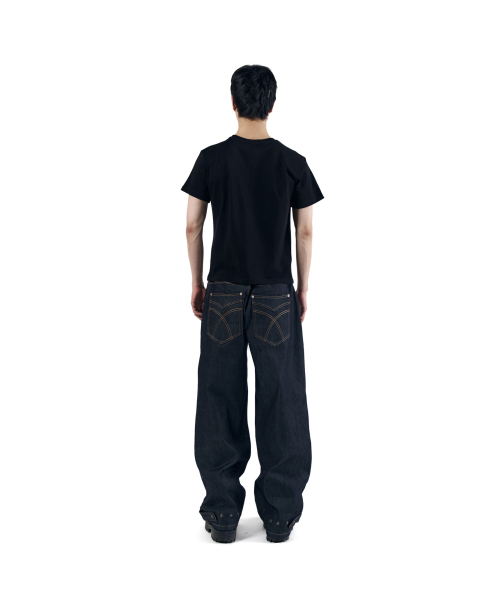 Stitched Baggy Denim Pants (Black)