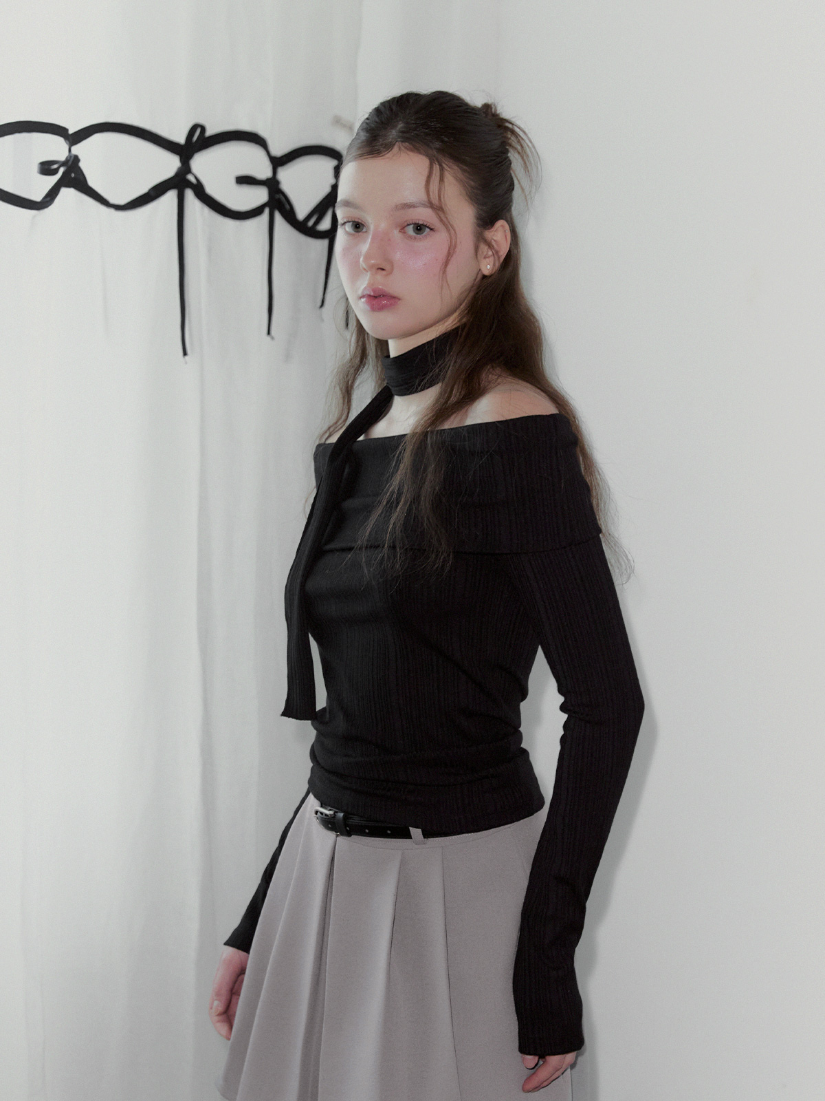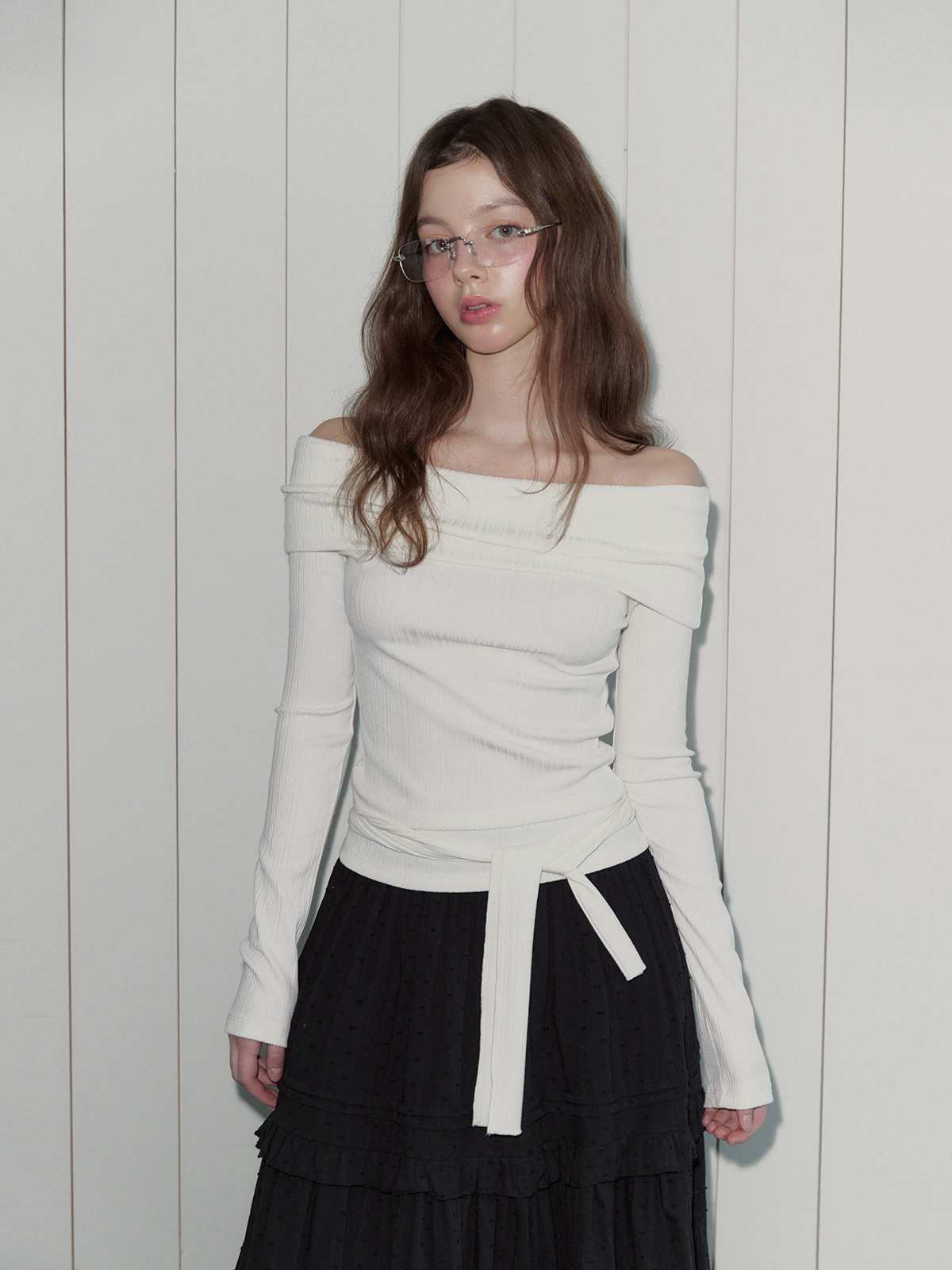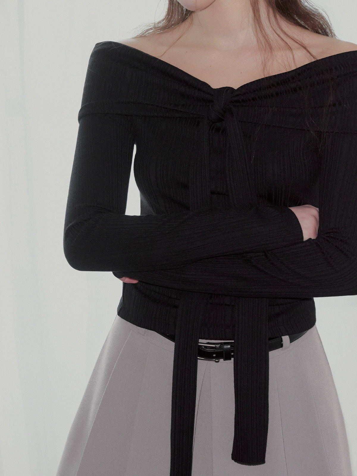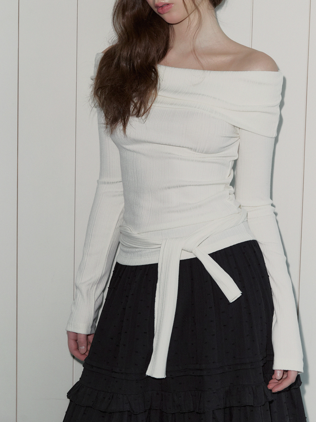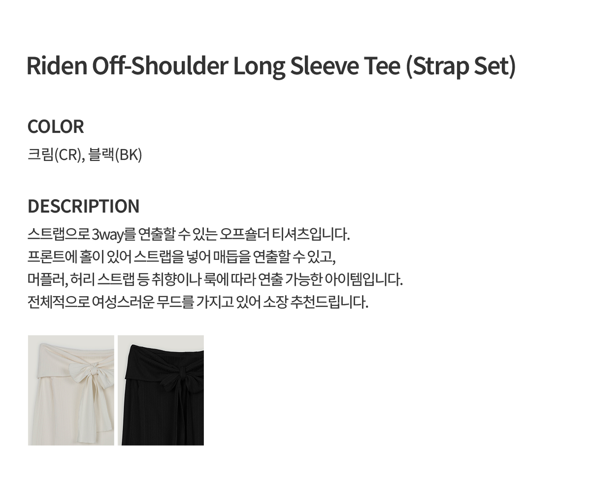 리든 오프숄더 긴팔 티셔츠(스트랩set)